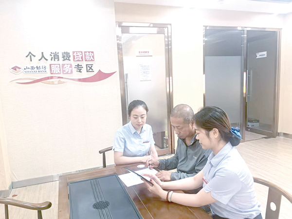 大连街支行工作人员为客户办理按揭贷款业务。山西银行阳泉大连街支行提供