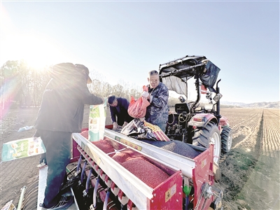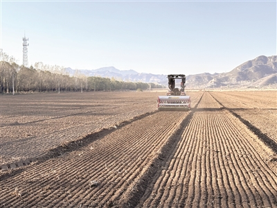 秋末冬初,位于阳泉市西北部的盂县苌池镇寒意渐浓。11月1日,晌午的阳光照在人身上暖洋洋的,盂县晋粮农业开发有限公司负责人贾永明来不及午休,早早就招呼同伴下了地。“前几天加班加点抢收玉米,今天的任务是完成100余亩冬小麦的播种。趁暖和,俺们中午也不停,争取一鼓作气干完。”贾永明说。他身后不远处,是位于苌池镇芝角村的100余亩冬小麦种植试验田。随着机械轰鸣,一粒粒饱满的麦种连同优质的肥料被播撒进土壤里,也为来年的丰收种下希望的种子。