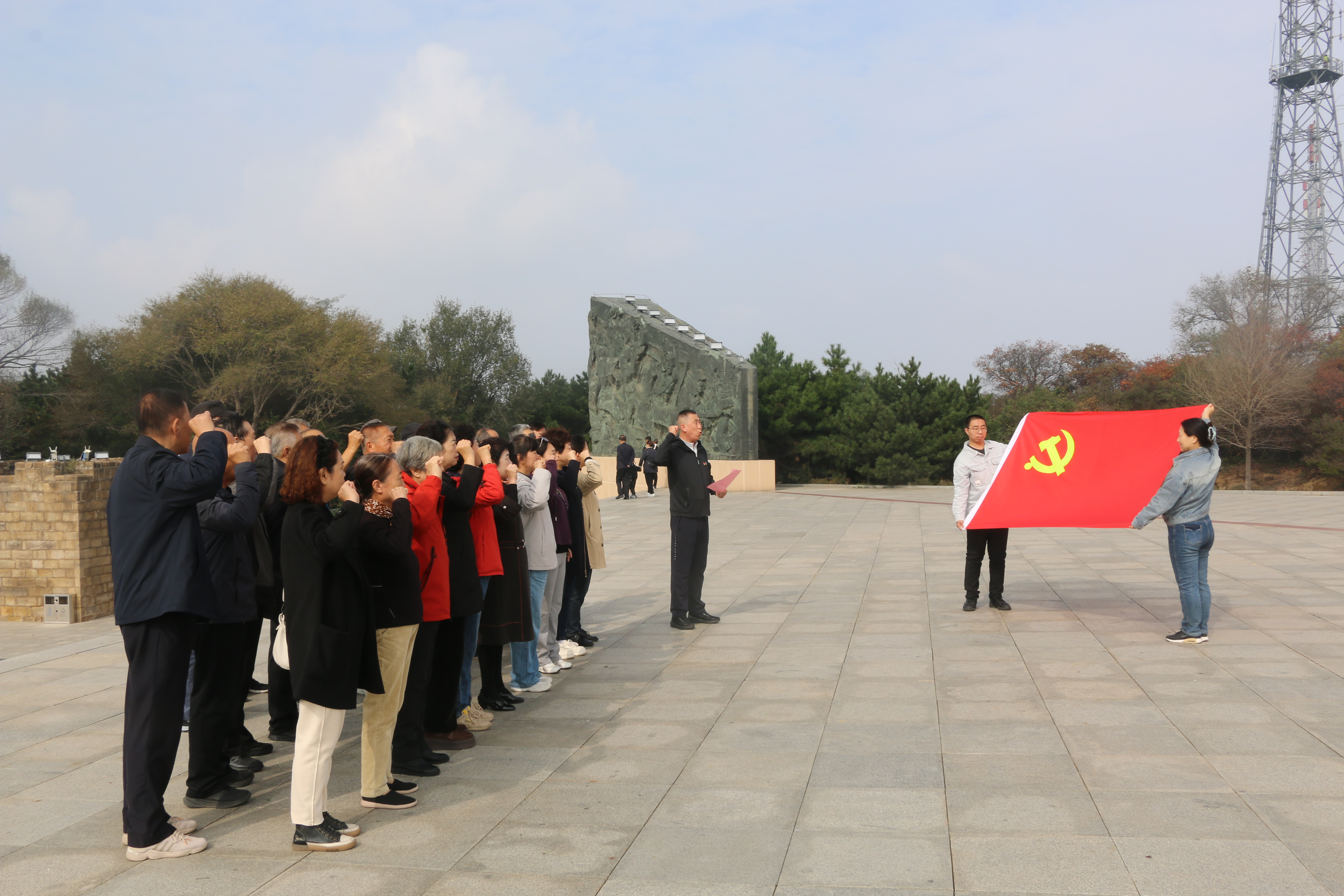 苍松翠柏映丰碑,铁血精神永传承。参观完展厅后,党员们在百团大战纪念碑前整齐列队,面向鲜红的党旗,举起右拳,重温入党誓词。“我志愿加入中国共产党,拥护党的纲领,遵守党的章程……”铿锵有力的誓言回荡在广场上空,既是对革命先烈的深切缅怀,也是对初心使命的庄严承诺。