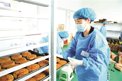 中秋节将至,盂县上社镇肖家汇村的盂县汇宇食品加工有限公司加工车间里一片忙碌景象。平日里下地干农活的村民们身着工作服,熟练地制作桃仁月饼。和面、揉面剂、包制、烘烤……在几人的默契配合下,色泽诱人的月饼陆续出炉,随后被分装进箱子里。肖家汇村党支部书记、村委会主任王杰说:“每年中秋节前后,是我们加工厂生意最好的时候。这几天有20多名村民在这里工作,制作月饼和核桃油。”