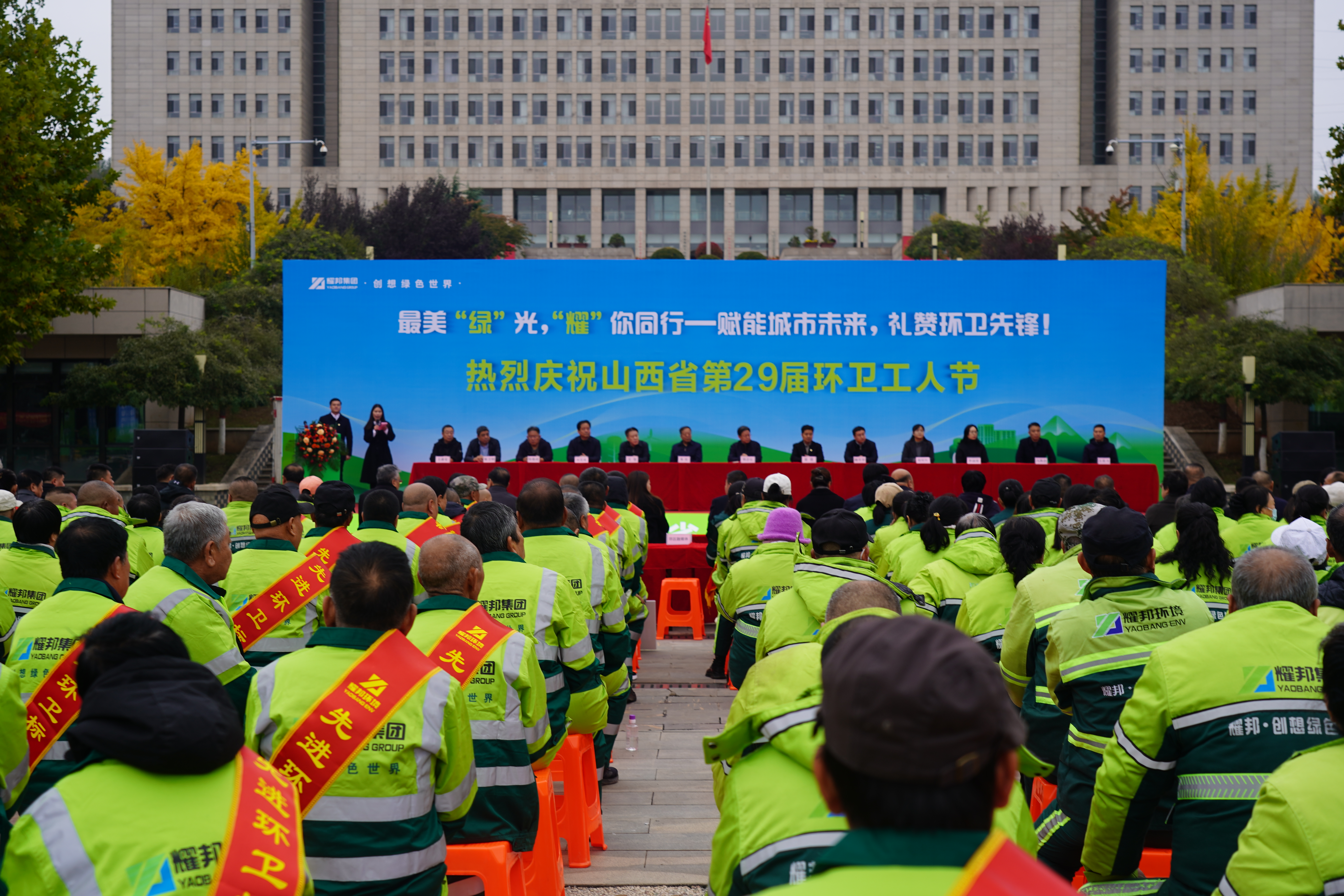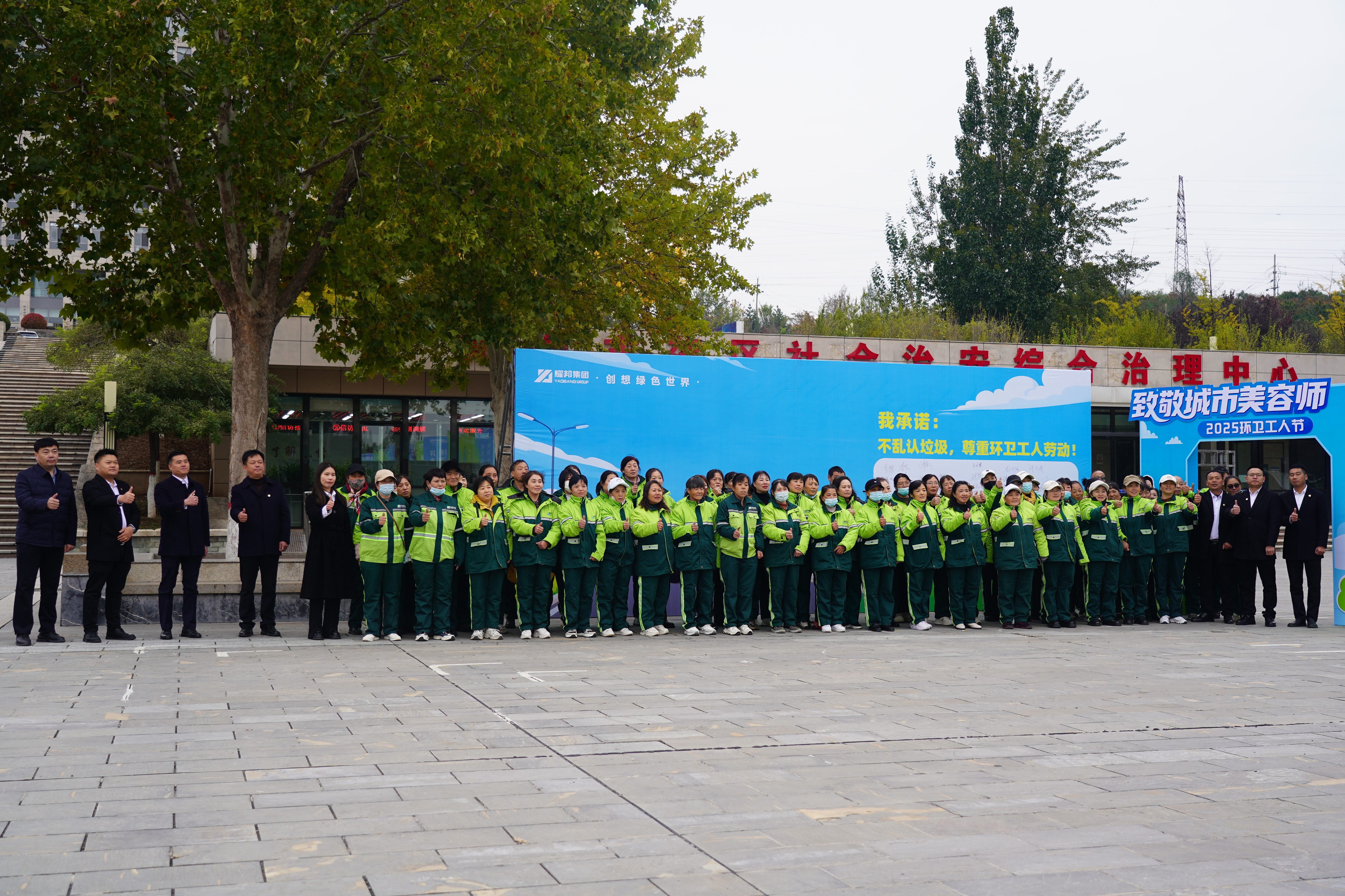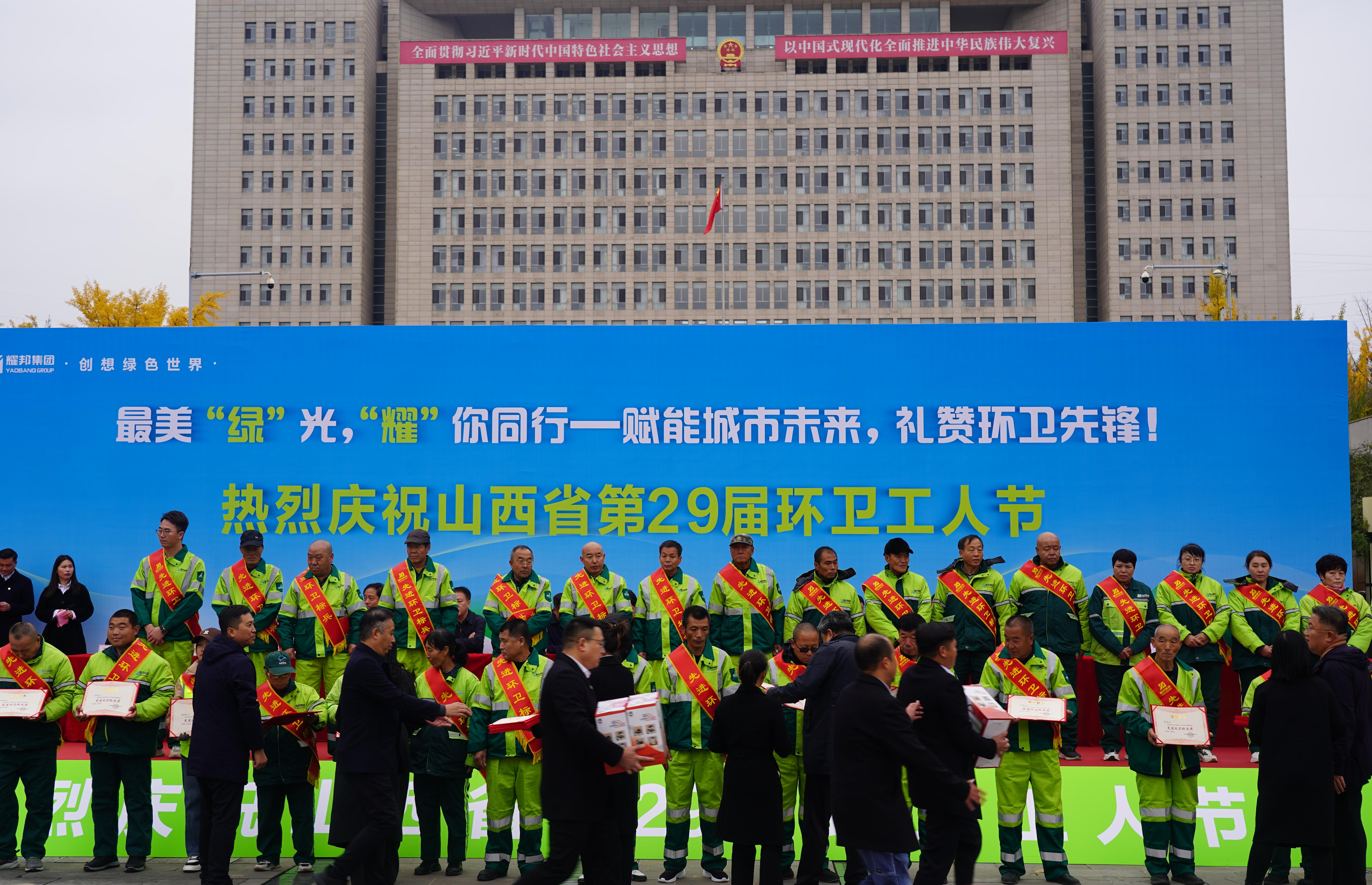 秋光澄澈,情暖山城。10月21日,山西省第29个环卫工人节庆祝活动在阳泉市郊区启幕。本次活动由耀邦集团精心策划、组织实施,以“最美绿光,耀你同行——赋能城市未来,礼赞环卫先锋”为主题,向日夜守护城市洁净的“城市美容师”致以崇高敬意与节日问候。