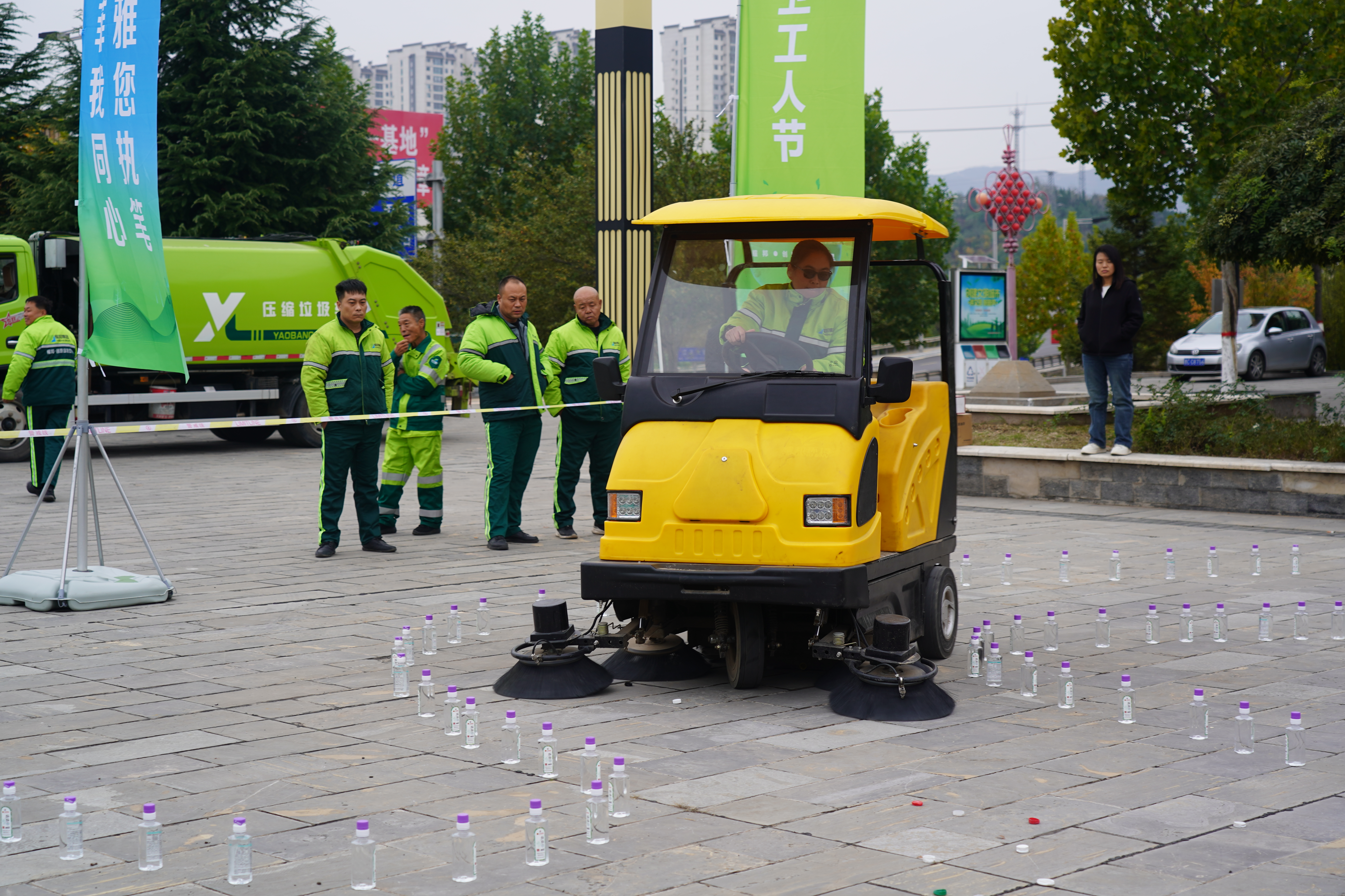 活动现场还设置了环卫车辆联合作业演示、市民签名打卡展区及多项机械、人工技能比武与趣味运动项目。参赛选手精神饱满、配合默契,充分展现了新时代环卫队伍的专业素养、技术实力与团队凝聚力。