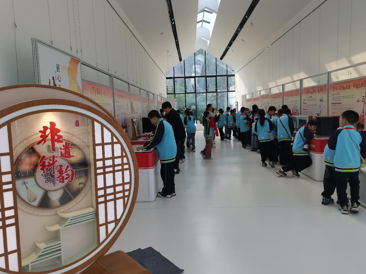同学们佩戴“城区科技志愿服务”徽章,走进“阳泉记忆·1947”文化园各主题展馆探索。在一号馆“城市记忆”内,通过“时光罗盘”微缩景观直观感受阳泉城市发展变迁;于“红色记忆”板块,借助文物与历史图片聆听革命先辈的奋斗故事;二号馆“城市书房 学校记忆”中,同学们深入了解当地教育事业的发展历程,体会知识传承的力量;三号馆“我们的大院”,还原了旧时生活场景,同学们在“万家灯火”小广场的温暖灯光下,打卡传承美好生活的精神地标,小小科普使者的责任感悄然扎根心中。